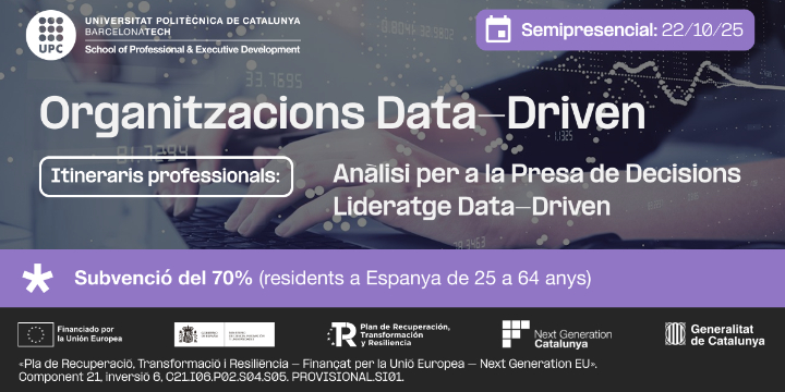 Especialitza’t amb els itineraris formatius en Organitzacions Data-Driven: Lideratge, Anàlisi i Visualització de la UPC School i aprèn a convertir la informació en un actiu estratègic per prendre decisions amb impacte.