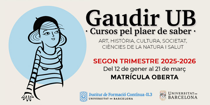 L’Institut de Formació Contínua – IL3 de la Universitat de Barcelona obre la matrícula per al segon trimestre del curs 2025-2026 dels seus programes Gaudir UB. Cursos pel plaer de saber.